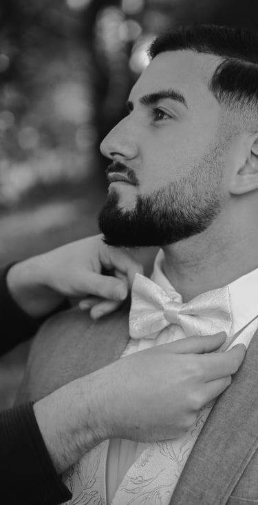 En tant que photographe de mariage, mon rôle est d'observer et d'immortaliser tous ces précieux moments où votre cœur battra plus fort, les câlins chargés d'émotion, les baisers passionnés, les éclats de rire avec vos amis, et même cette larme qui coulera sur sa joue lorsqu'il ou elle croisera votre regard pour la première fois.