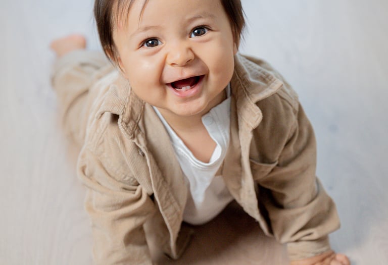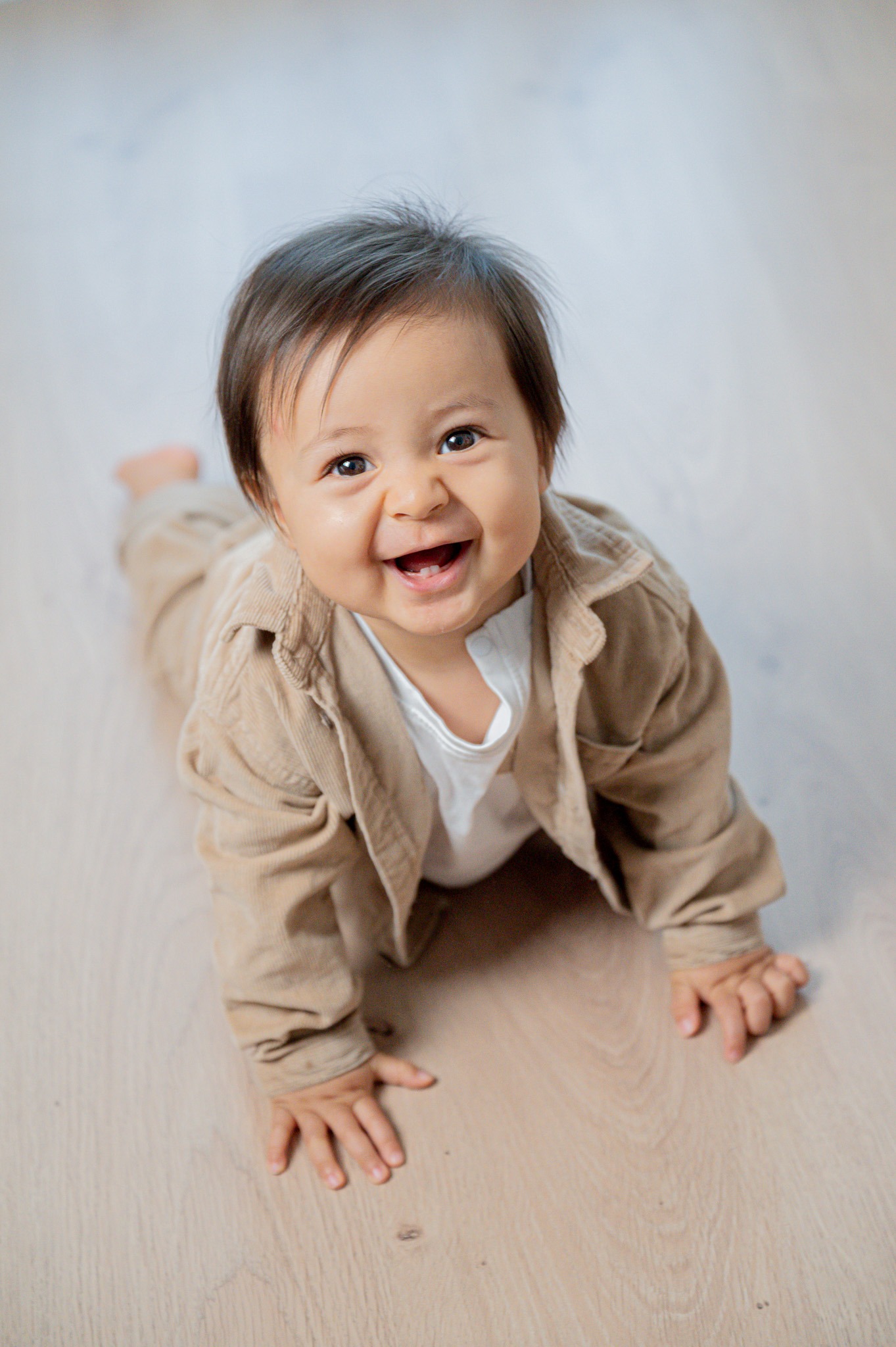 Avec ses adorables mimiques, ses premiers rires et ses grands yeux curieux, votre bébé pourra même se tenir assis tout seul à cet âge ! Il est important de jouer avec lui pendant la séance, ce qui permettra de capturer son caractère unique. L'avantage à cet âge est qu'il est bien éveillé mais ne court pas encore partout, facilitant ainsi les séances photos.